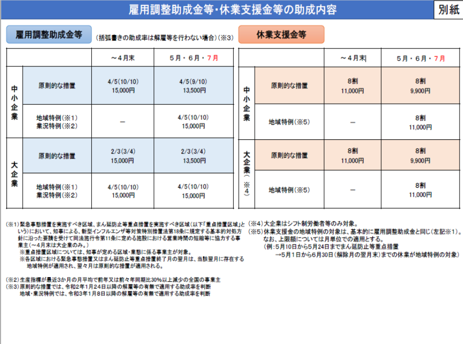 雇用調整助成金、小学校休業等対応助成金の助成率や申請方法等、要件が複数回変更になっています。